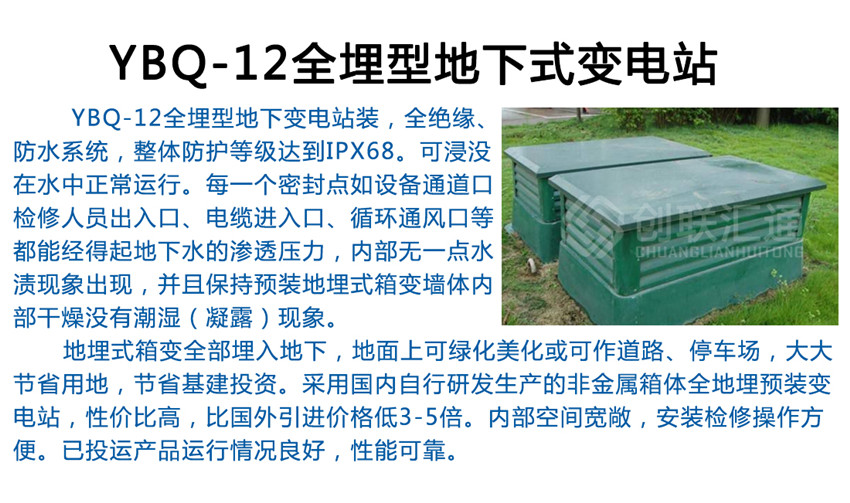 追求“新穎”、講究“美觀”,體現(xiàn)現(xiàn)代化城市電力設(shè)施環(huán)保化,是當(dāng)信電力建設(shè)發(fā)展的潮流,同時也是反映一座城市現(xiàn)代化文明程度的重要標(biāo)志。我公司以創(chuàng)建一流電力設(shè)備,美化城市環(huán)境,服務(wù)社會為宗旨,積極努力解決目前電力設(shè)備在安裝、維護(hù)等如架空線入地工程、沿海臺風(fēng)鹽霧侵蝕、環(huán)境視覺諸多困難,引進(jìn)吸收外先進(jìn)技術(shù)開發(fā)了環(huán)保型非金屬地埋式系列變電站產(chǎn)品。