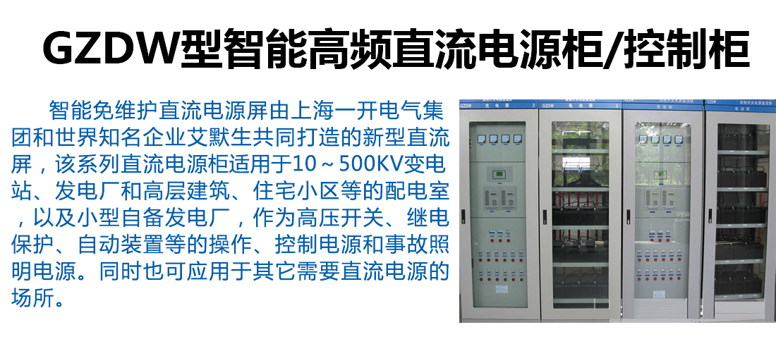 本智能免維護(hù)直流電源屏由上海一開電氣集團(tuán)和世界知名企業(yè)艾默生共同打造的新型直流屏,該系列直流電源柜適用于10~500kV變電站、發(fā)電廠和高層建筑、住宅小區(qū)等的配電室,以及小型自備發(fā)電廠,作為高壓開關(guān)、繼電保護(hù)、自動(dòng)裝置等的操作、控制電源和事故照明電源。同時(shí)也可應(yīng)用于其它需要直流電源的場(chǎng)所。